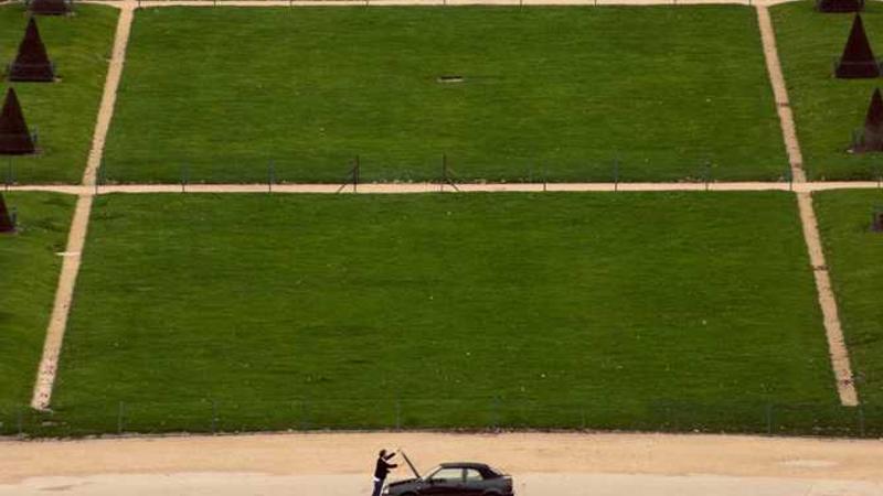图片:一位穿着独特、颜色对比鲜明的男士走在街头,周围是穿着正式的人群,形成鲜明对比。
